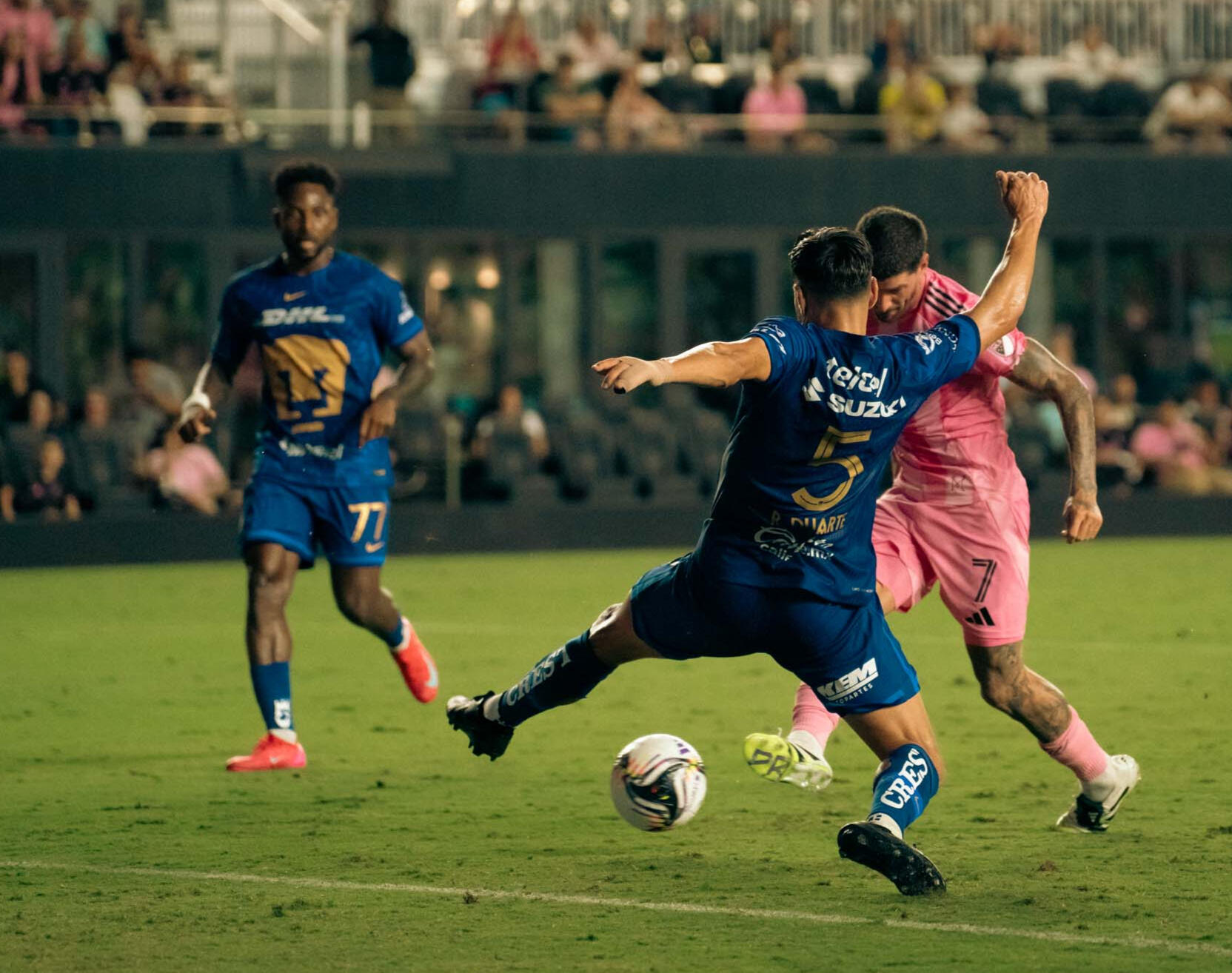 Inter Miami 3-1 PumasInter Miami venció 3-1 al Pumas en un partido donde la ofensiva y la contundencia marcaron diferencias. El duelo fue futbolístico y con momentos de superioridad local. El equipo visitante sorprendió con el gol inicial a través de Jorge Ruvalcaba al 34’ pero Miami respondió con fuerza y dio vuelta el marcador con goles de Rodrigo De Paul, quien se estrenaba como goleador en Miami al minuto 45’ tras asistencia de Luis Suárez y junto al penalti anotado por Luis Suárez al 59’ y el tanto final de Tadeo Allende al 69’ con asistencia de Luis Suárez. Durante el primer tiempo, Pumas ejerció presión y buscó controlar el medio; en la segunda mitad, Miami equilibró el juego, aprovechó espacios y generó los goles decisivos.Con este triunfo, Miami gana confianza internacional. El siguiente partido del Inter Miami será el domingo 10 de agosto cuando visite al Orlando City.