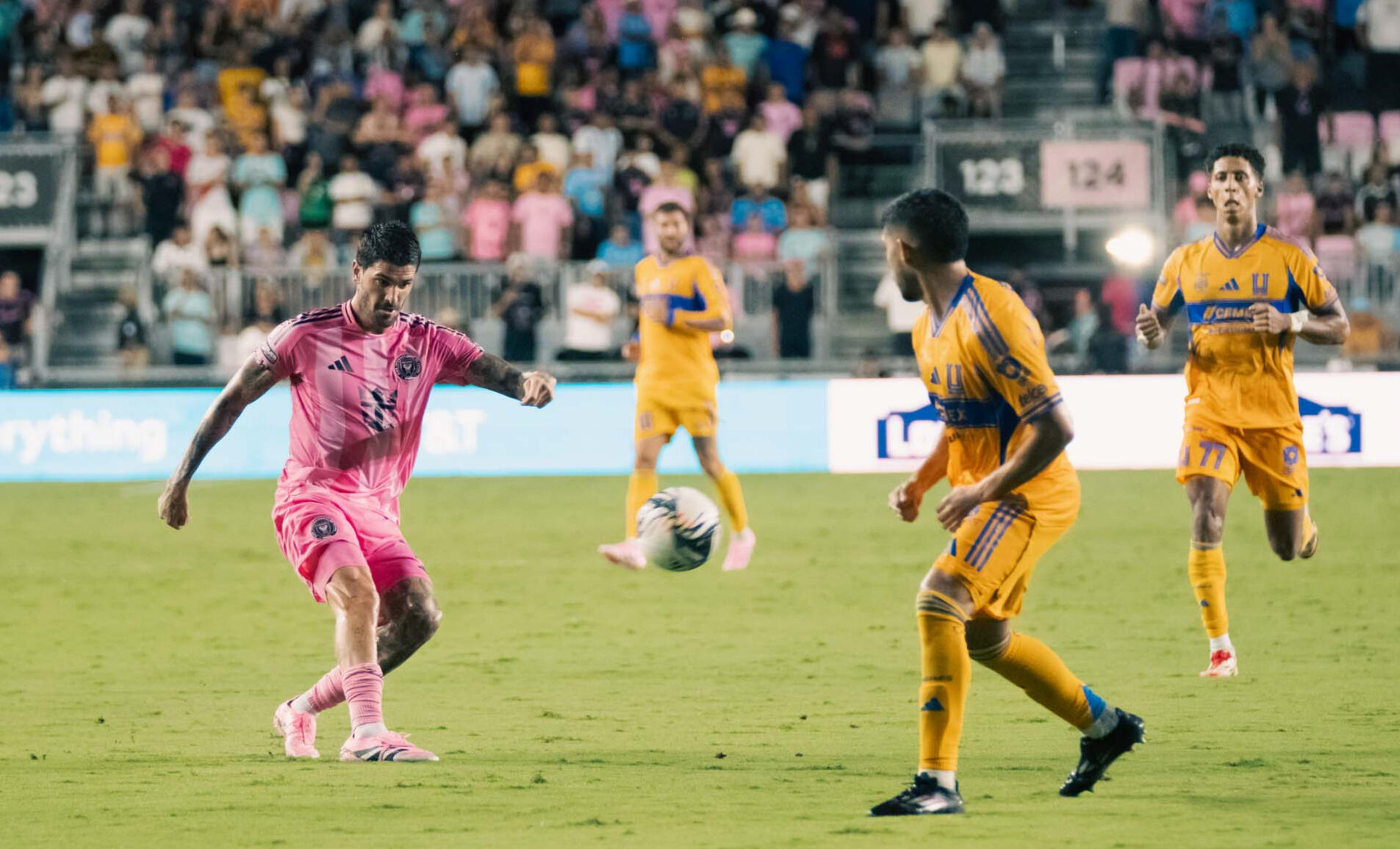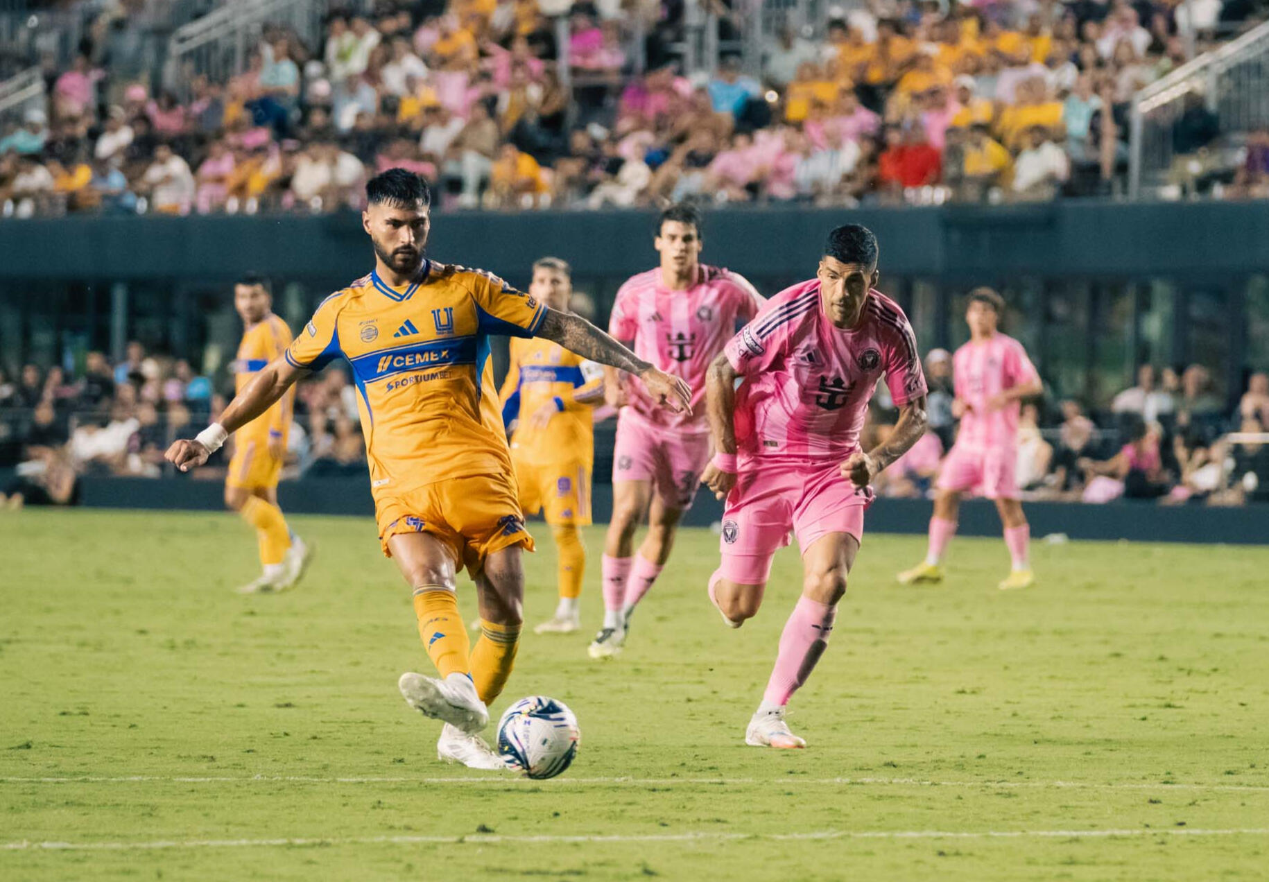 Inter Miami 2-1 UANL TigresEn una noche cargada de tensión en el Chase Stadium, Inter Miami venció 2-1 al UANL Tigres. Fue un duelo parejo decidido por detalles individuales.El Inter Miami se adelantó con un tanto desde los 12 pasos de Luis Suáre. Tigres respondió e igualó el marcador a través de campeón del mundo, Ángel Correa al 67’, pero Miami logró el gol decisivo en los momentos finales con otra penalti anotada por Luis Suárez al minuto 89’. Durante buena parte del partido, el dominio fue compartido: Tigres hizo daño con ataques rápidos y presión, mientras que Miami buscó manejar el balón y generar desde el mediocampo. En los minutos finales, el local supo sostener la ventaja y resistir los embates rivales.